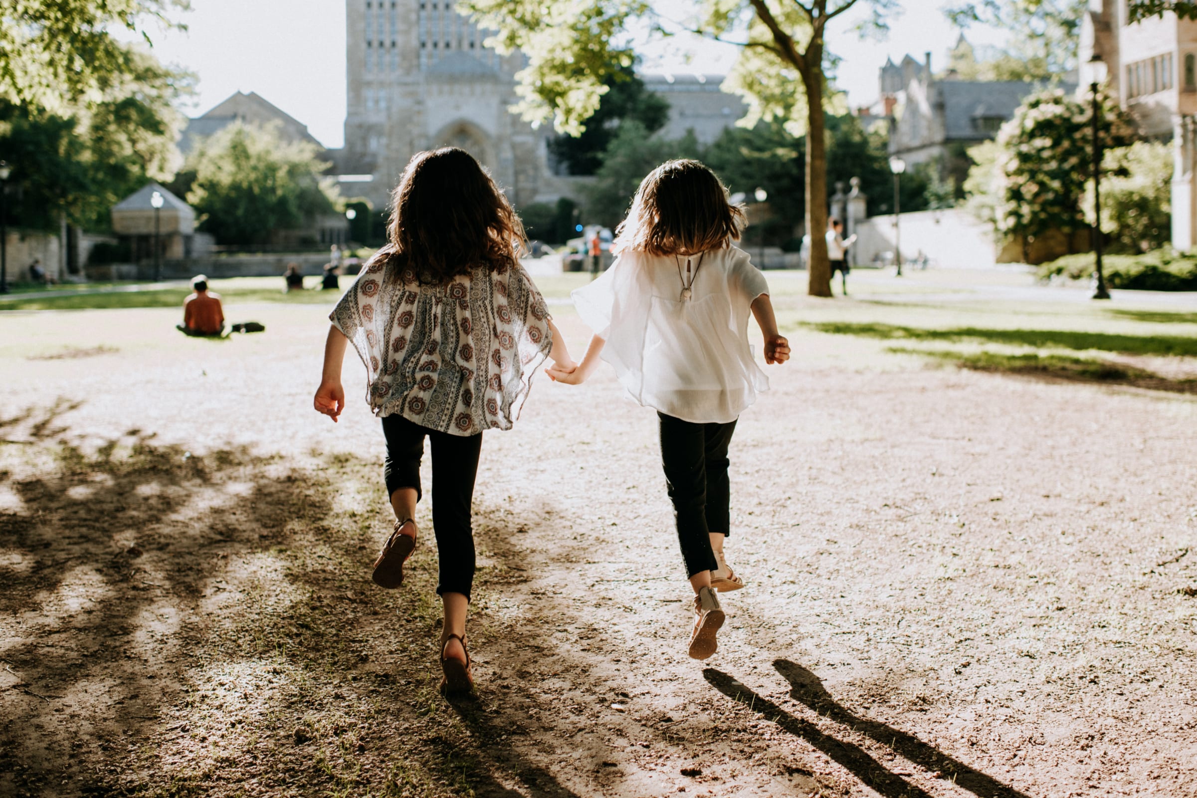 When Emily reached out this year to do another session with her kiddos, we decided it might be fun to capture all that magical energy her daughters have in the sunshine. The Yale University campus is a special spot for Emily and her husband Bryan and I love shooting in New Haven, so we made a date to meet in one of my favorite green spots on the campus – near the School of Music. Lots of people think you need tons of room and endless green for a fun outdoor session, but add in a college campus with gorgeous old architecture and you’ve got some really great opportunities to use line and shape alongside light to create beautiful images of a family being their wild, joyful selves.